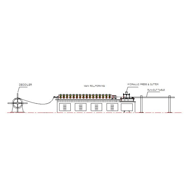 De-coiler (15 tons) - Strip feeding roll + leveler+ Main Roll Former - Stationary cutter - Unloading Table (Without power)- - completed product
